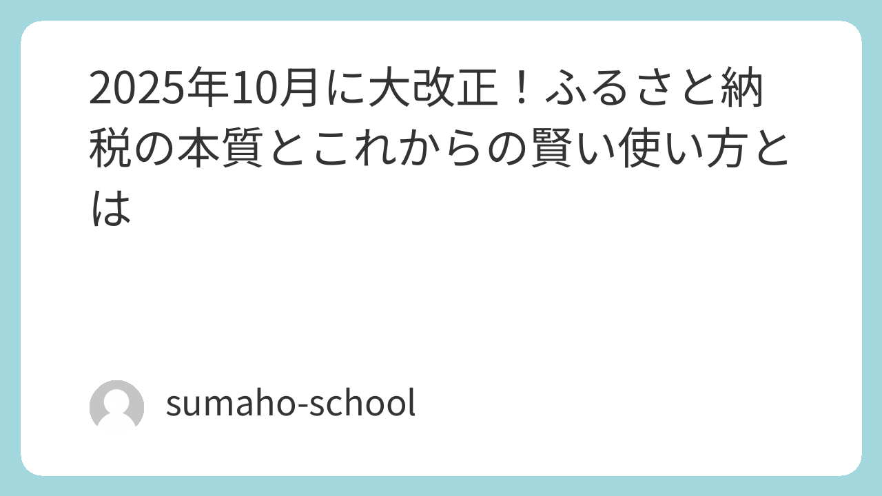 2025年10月に大改正!ふるさと納税の本質とこれからの賢い使い方とは