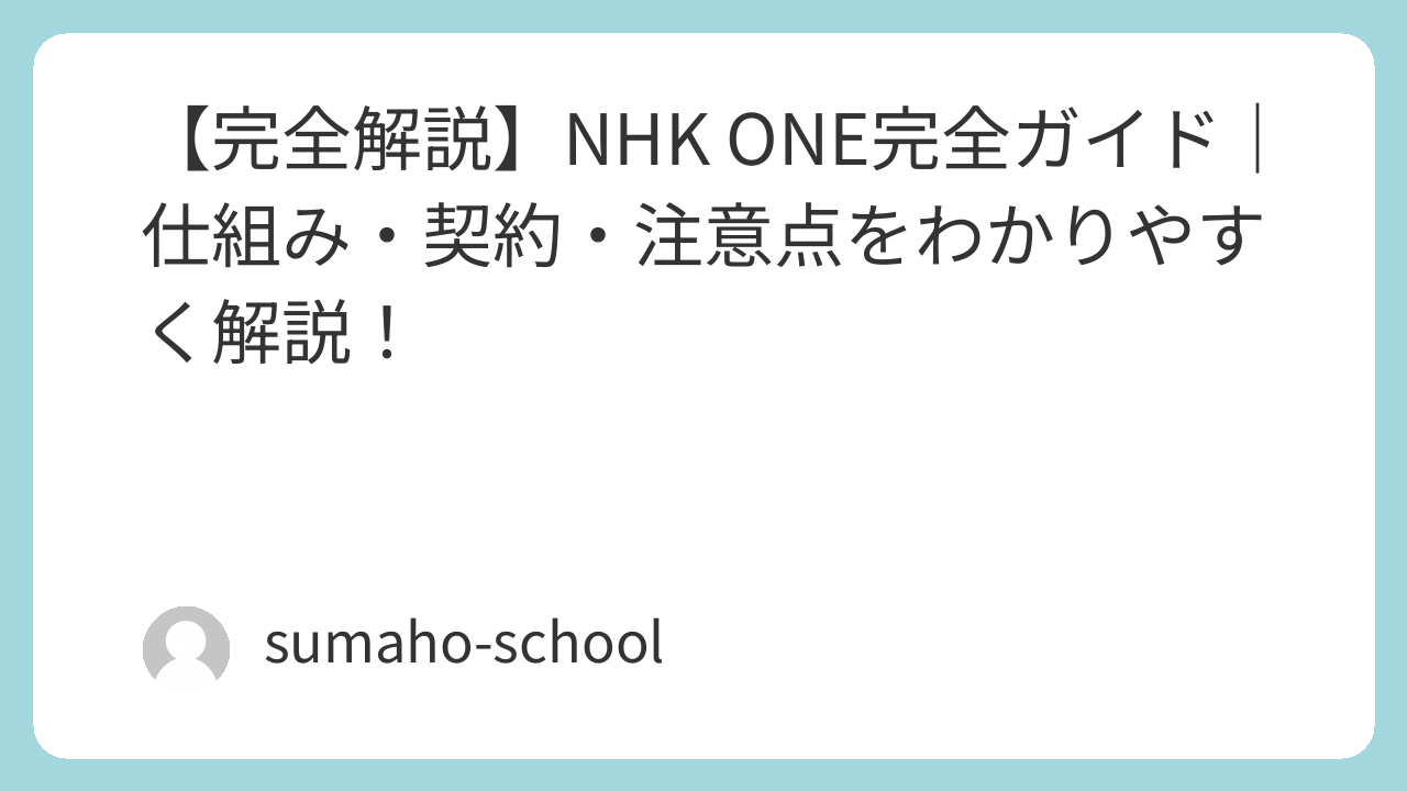 【完全解説】NHK ONE完全ガイド|仕組み・契約・注意点をわかりやすく解説!